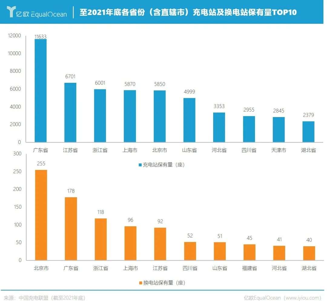 中国充电联盟数据显示,2021年底各省份充电站及换电站保有量各不相同,目前来看,以广东省、浙江省、上海市、北京市等地居多。