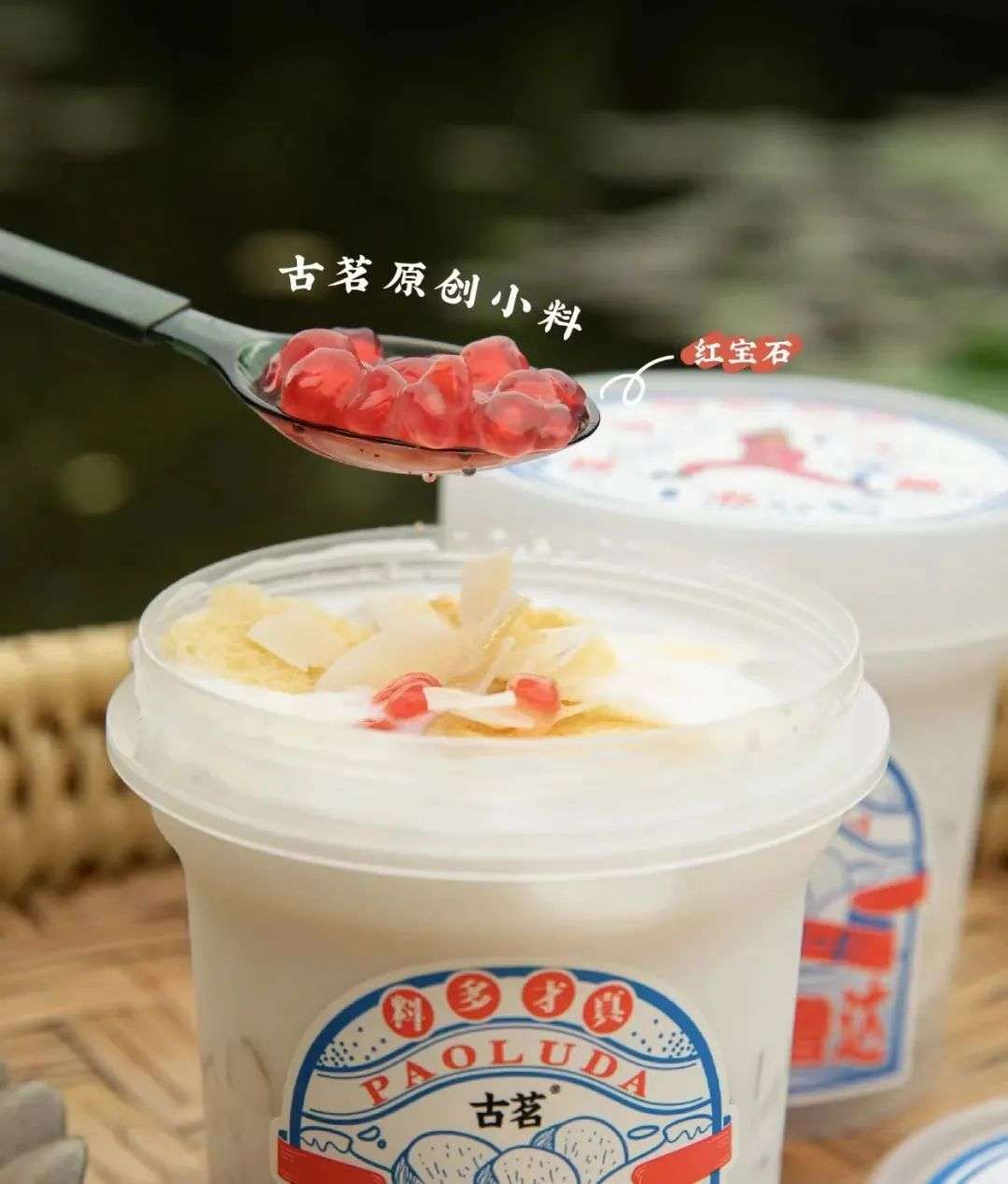 除了茶叶之外,古茗去年独立研发了一款小料“红宝石”,软糯的外表,配上荔浦马蹄做芯,点缀在泡鲁达中丰富口感,去年8月在全国门店上市后,迅速成为古茗小料中的顶流。