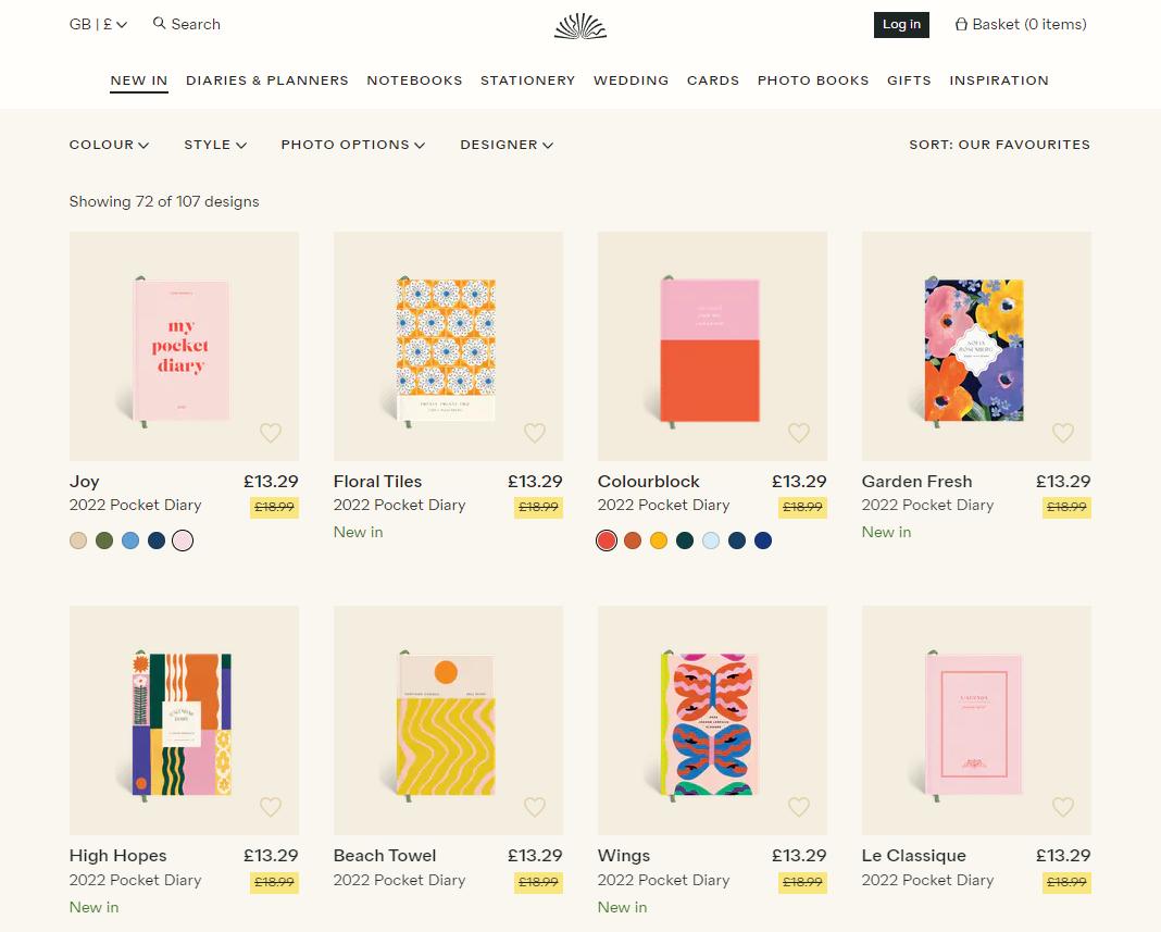 浏览 Papier 的网站,可以看到它卖的每一款手账、贺卡、日历和计划册等,视觉设计不能称得上华丽,但都十分“讨巧”,很贴合如今相当一部分年轻人的审美爱好。