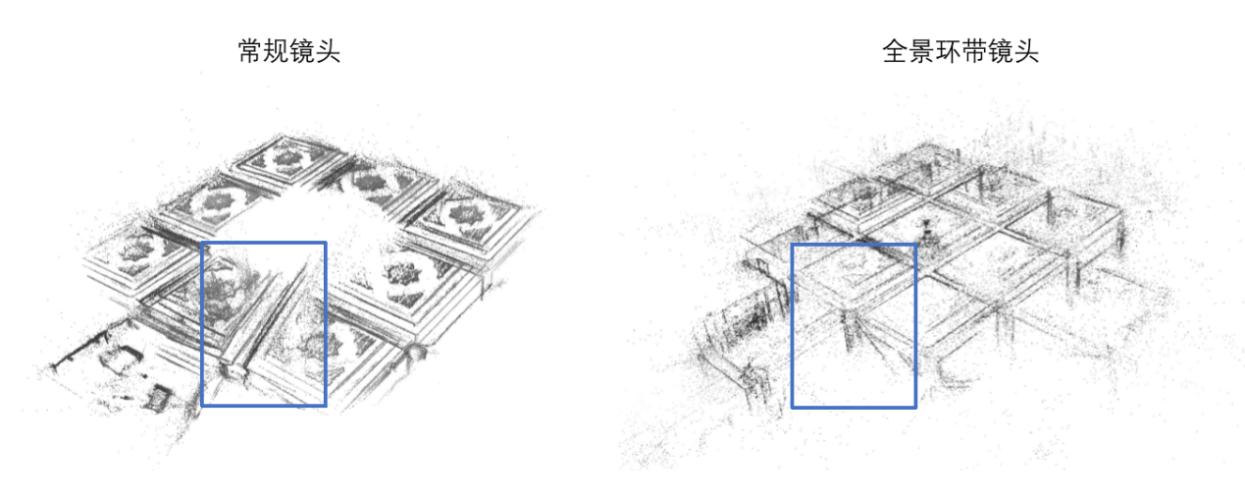 在相同算法框架下,基于全景环带相机的 VSLAM 相较于传统相机在建图一致性方面具有突出优势,保证了算法的精度与鲁棒性,大大提升了 VSLAM 系统的重定位能力与全局一致性,并具有丰富的拓展空间。