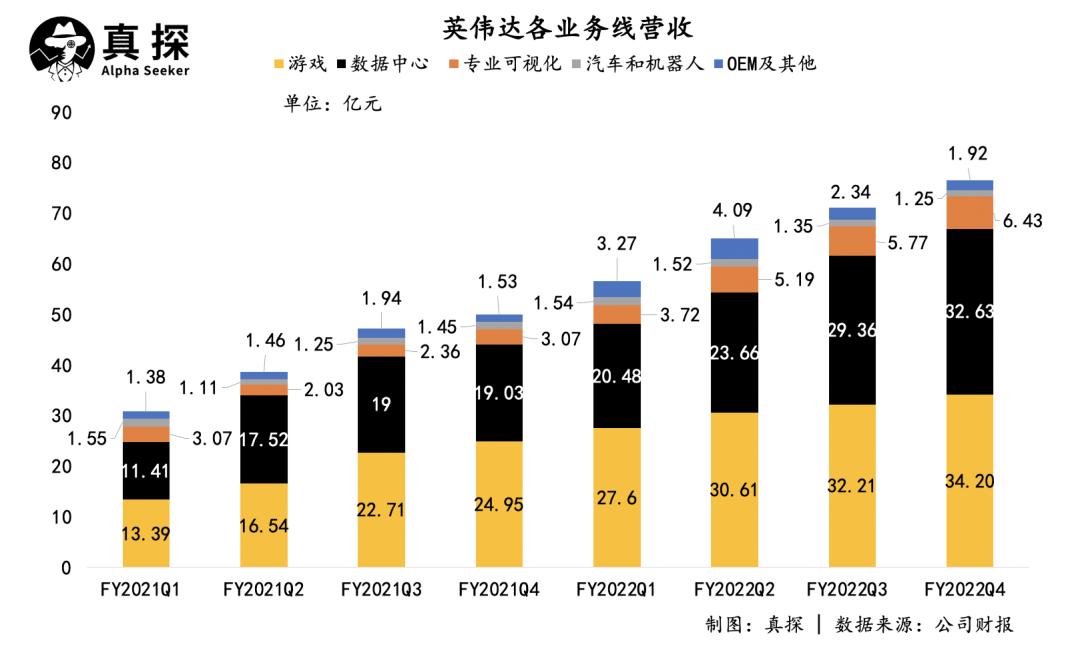 其中,数据中心业务、游戏业务和专业可视化业务营收分别为43.2亿、32.63亿和6.43亿,均是历史新高;