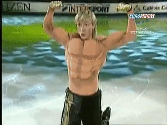 羽生结弦的偶像,被誉为“普皇”的普鲁申科,最爱在表演赛上演的是肌肉男,有点恶趣味,但也有被可爱到。