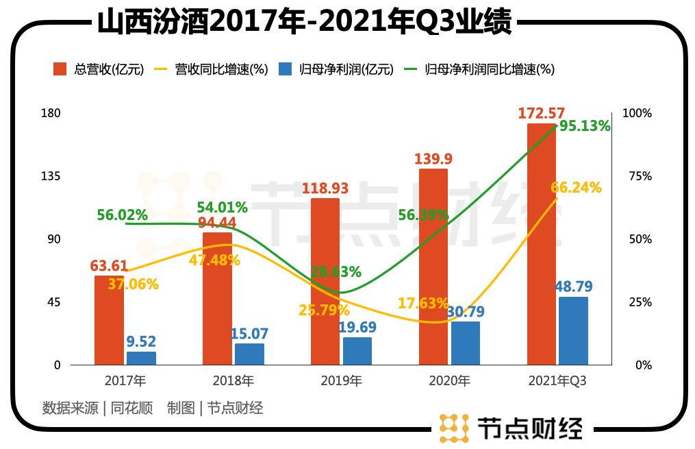 从近几年的业绩增长来看,山西汾酒也充分享受到了行业变局带来的红利。