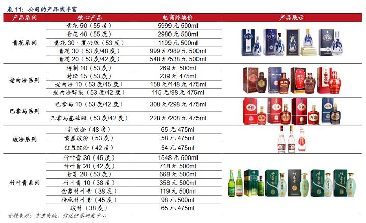 此外,汾酒在高端产品上的布局仍有所不足,截至目前有青花汾酒30·复兴版和青花汾酒40·中国龙等产品,相比飞天茅台、五粮液普五、泸州老窖·国窖1573等高端主流在品牌认可度上仍有差距。