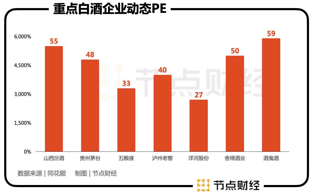 而从估值上看,山西汾酒可以说是受到了市场优待。截至2月16日收盘,公司动态PE在55倍左右,静态PE甚至达到117倍,在众多白酒品牌中尤为突出。