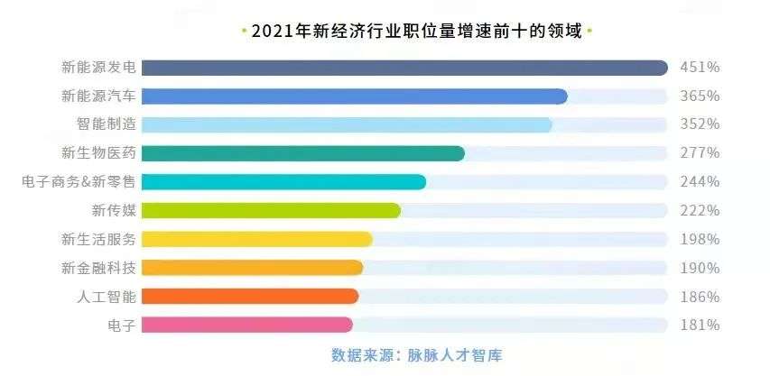 难怪,脉脉人才智库近日公布的2021年新经济行业职位量增速前十的领域中,前三都与新能源相关,新能源汽车以365%的增速高居第二,抢夺着大众的注意力。