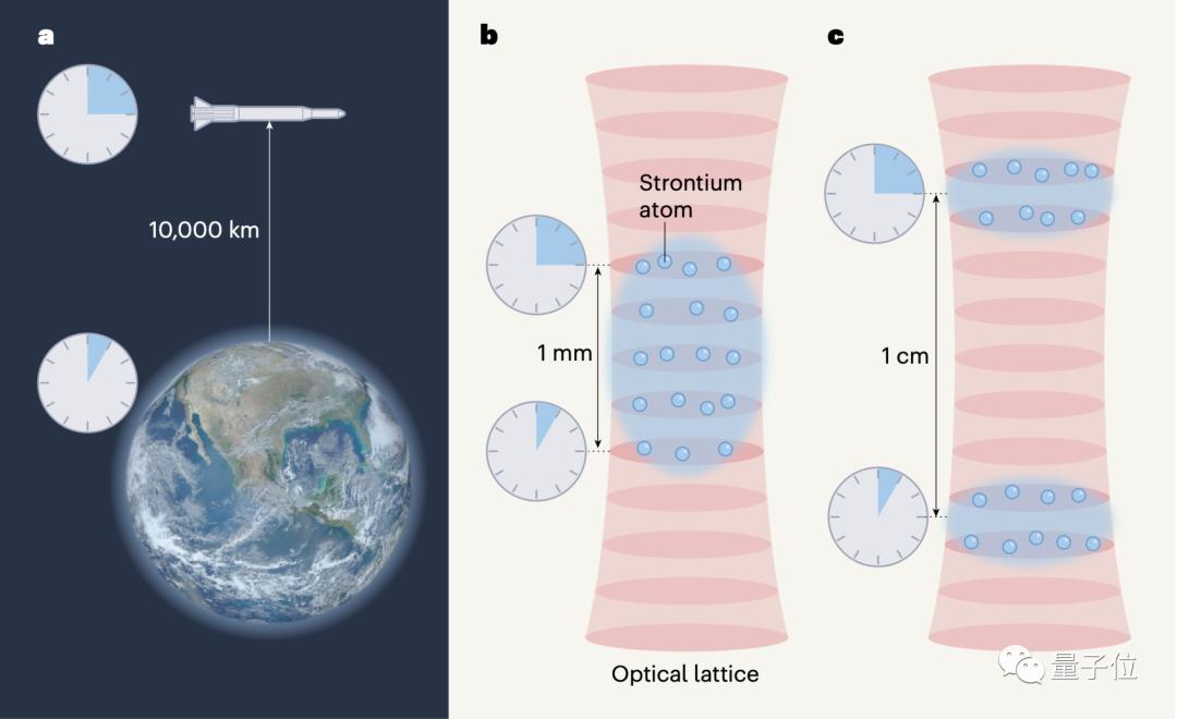 △ 在不同高度差上验证时钟变快(图片来自Nature)