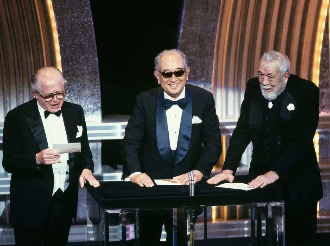 1986年第58届奥斯卡颁奖典礼 比利·怀尔德、黑泽明、约翰·休斯顿一起颁发最佳影片