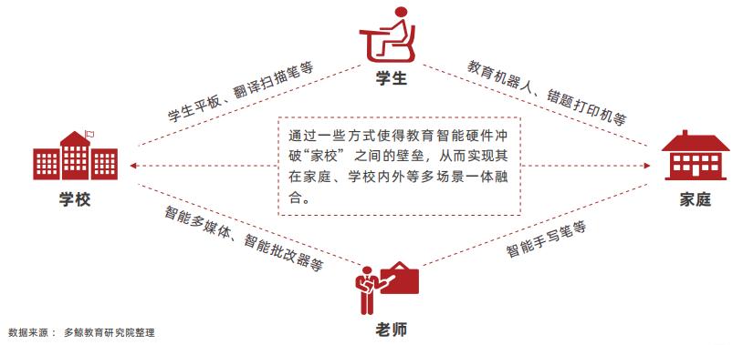 教育智能硬件让家校一体、课内外联动照进现实,学习发生在泛在学习环境之中。教育智能硬件不再是独立的个体,也不单纯是教育体系的附属科技产物,而是充分发挥其数据收集、分析、共享的平台功能,在不同终端之间建立起彼此联结的一体化学习空间,重塑原有的教育模式。