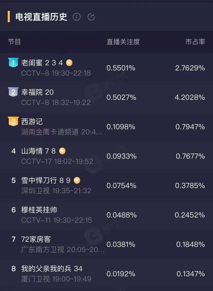 实际上,老剧“新”看,的确是今年春节期间的一大趋势,且占据重大比例。据不完全统计,春节期间,仅每天晚上黄金时段,地方卫视重播的老剧就已达到8部,其中还包括了央视8套黄金时段播出的《老闺蜜》。更不提,还有像湖南卫视这样春节期间全日里播“老剧”的一线卫视。(注:春节期间,湖南卫视上午播出《锦绣未央》,下午播出《功勋》)。