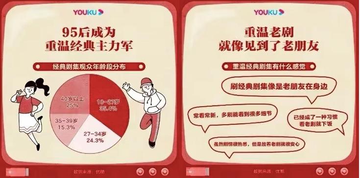 优酷给出的“重温经典”报告中,95后为主力军,从分布地区来看,粤苏浙网友最“恋旧”。但据微微反馈,像她这样春节期间陪伴父母追剧的年轻人,大有人在。也因此,重温老剧潮流中,年轻人陪伴父母追剧的人群,也成一大主力。