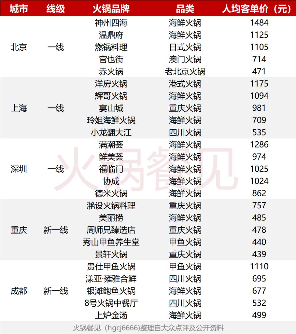 餐见君统计了五个城市的部分高端火锅品牌,揭开了高端火锅业态的冰山一角。