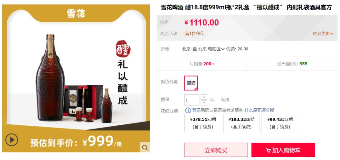 近年来,啤酒行业逐渐从增量市场转向存量市场,酒企开始在高端化发力。2021年,华润啤酒推出了单瓶定价超过500元的新品“醴”,仅以2瓶装礼盒出售。春节、情人节等传统消费季刚过,华润啤酒天猫旗舰店礼盒装“醴”的月销量仅有200+。业绩预告显示,华润啤酒2021年度预计归母净利为44亿至47亿,同比增速约为110%-124%。