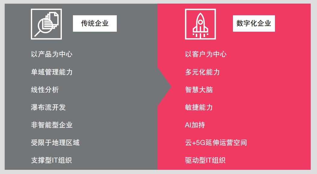 传统企业的组织是为产品服务,部门之间的数据往往是封闭的,而数字化组织是为用户服务,各部门的边界变革模糊,数据间的有效流通提高了内部沟通协作的效率,得以更快响应用户需求。(比如招商银行)