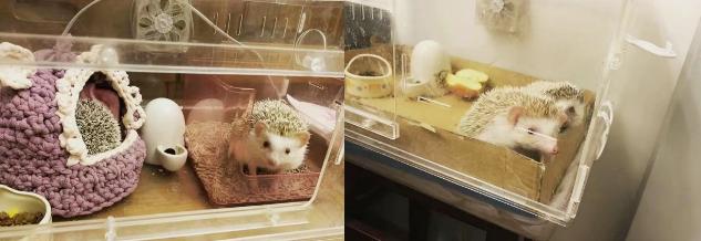 毕业有了自己的小屋后,孙媛直接第一时间从网上“领”了两只刺猬回家。她担心刺猬到家时会不适应,甚至提早一周为两只小宠物准备好了温箱、干粮以及新鲜的面包虫。