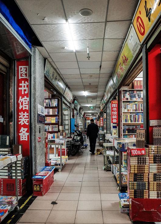 前几天挑了一个工作日的下午5点过去,经人询问才找到书市的大门,推门进去,一切都不是曾经描述中的样子。好些店铺已经关门下班,或挂牌出租转让。至于前来买书的人,从一楼逛到3楼,也没有见到一个。