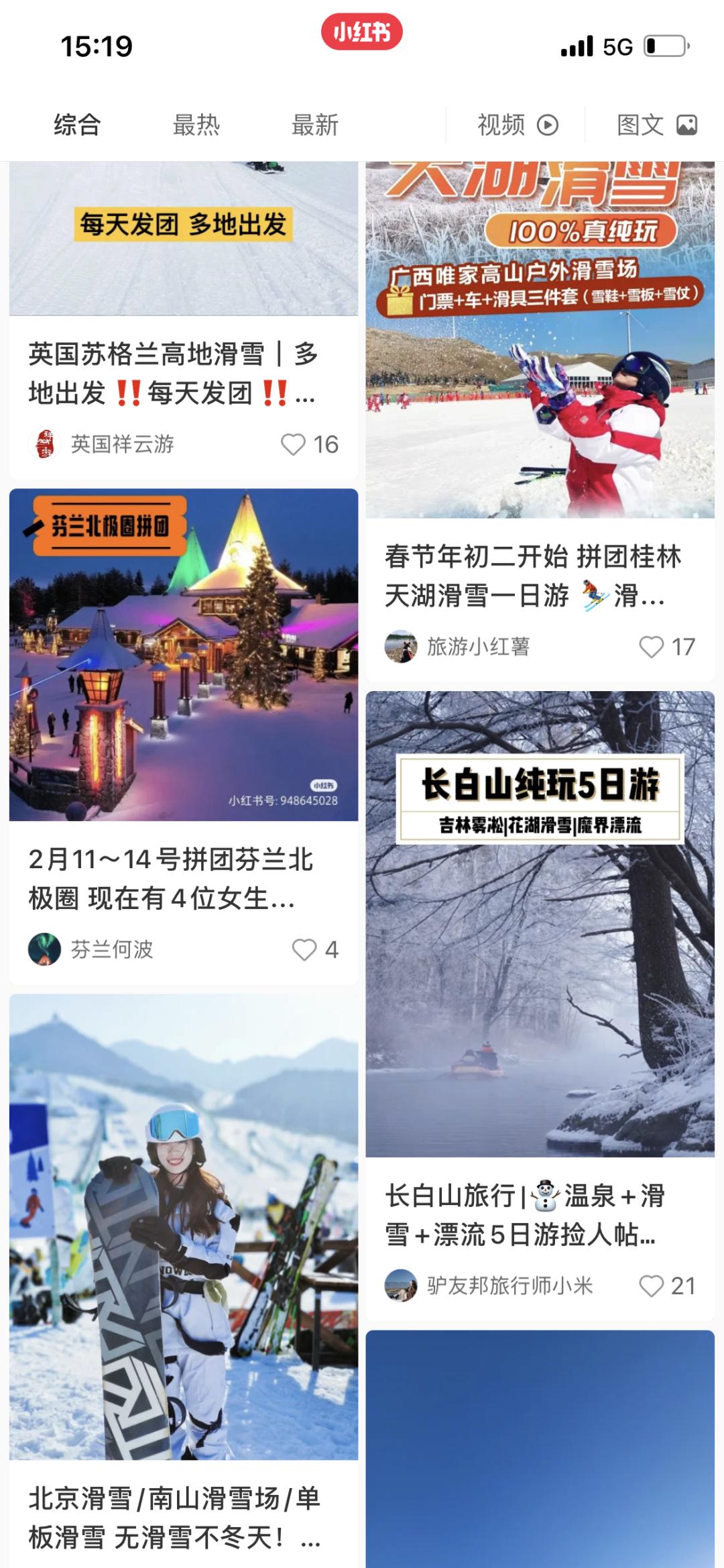 滑雪更接近于一项极限运动,远没有跑步、瑜伽等常见,想要在自己的朋友圈找到一个同样热爱滑雪并且时间合适的人很难。所以一到雪季,关于“滑雪拼团”的话题就频繁出现在了小红书、豆瓣等社交软件上。