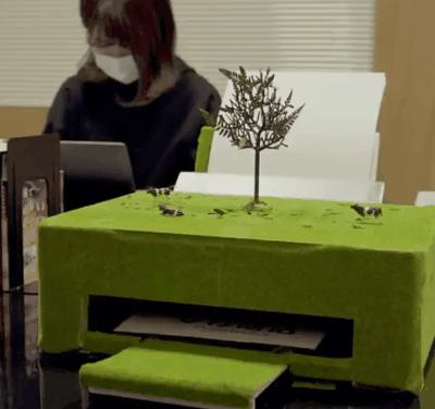 「绿色」打印机,看起来可不止染成绿色这么简单:每当打印机工作时,就意味着会有纸张使用,而这代表着树的一部分被人类消耗。所以只要有人打印出一页纸,打印机上面就会掉下一片树叶,高情商的说法,这样能提醒人们保护环境,节约用纸,低情商的说法,这样会让你觉得等待打印的时间不至于太无聊。