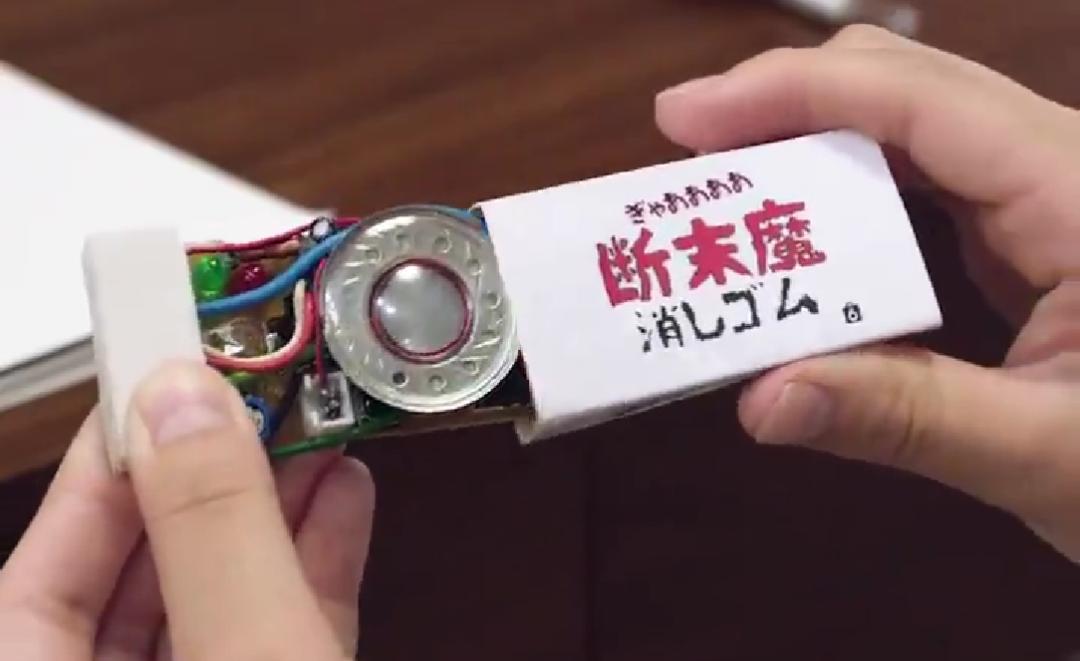 带着这样一个特别的脑洞,6 秒钟商店做出一个特别的「尖叫橡皮擦」概念视频,这个橡皮擦从外部看并没有什么特别,但内部其实安装了电池和小喇叭,当你拿起它擦东西时,橡皮擦就会发出尖叫,看起来就像是被擦掉的东西发出的「控诉」,也可以理解成被你消耗掉的橡皮擦本身在尖叫。