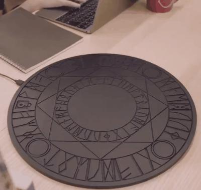 对,你没看错,曾经在网上爆火的魔法阵充电器的概念设计就来自 6 秒钟商店,不过后来的确被制作出来了,从实用性上讲它完全没有优势,但如果你喜欢 ACG,怎么能拒绝的了这么酷炫无敌的充电方式呢?