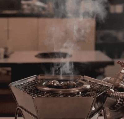 同样的概念也可以放在烤肉上,当烤肉熟了之后,如果能够飞起来,那岂不是很好玩?而且除了很好玩,这样的设计也可以避免烤肉粘在铁网的情况。