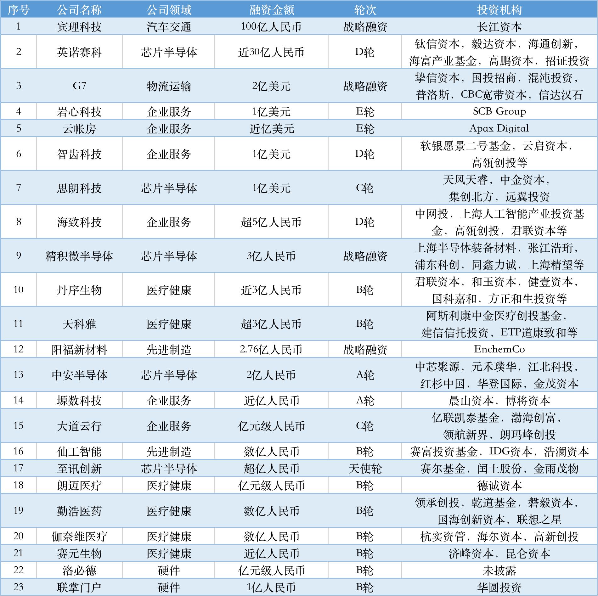 本周融资金额过亿的交易共有23笔,融资规模最大的一笔为宾理科技,单笔融资达100亿人民币。