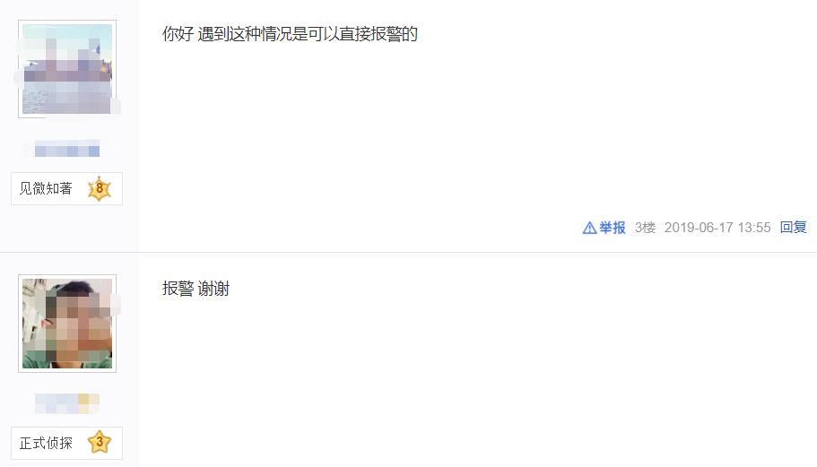 而网友的反应则普遍是“建议报警”“报警,谢谢”等,虽然也有部分网友认为是楼主矫情,玩不起就别玩,但是声音整体来看仍属于小数,其中有个直接辱骂楼主的网友,更是被其他网友声讨了一百多层的回复。