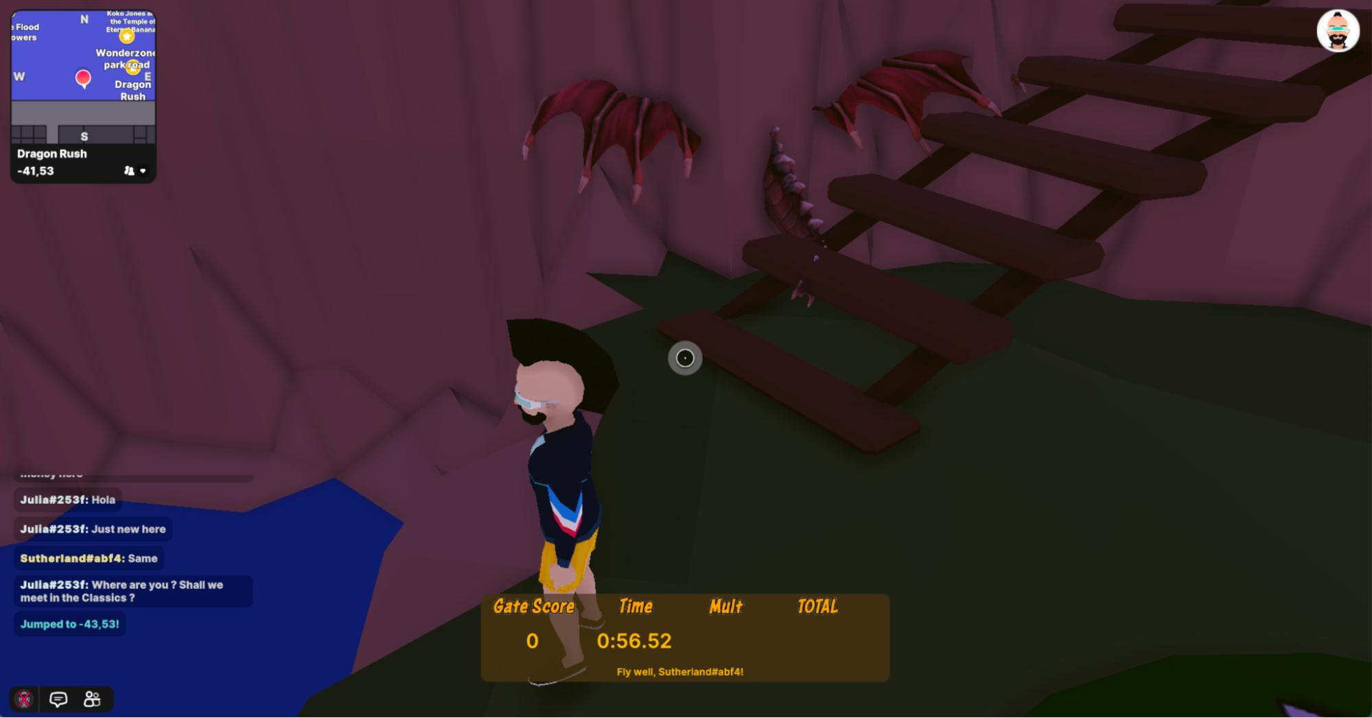 我要介绍一下Sutherland。络腮胡,莫西干头,戴护目镜,穿着黄色小短裤。他就是我在Decentraland的化身。
