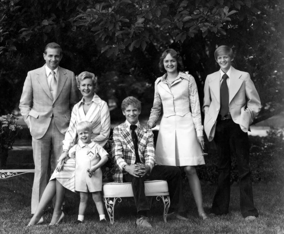 插图 | Bill Marriott与三个儿子,大儿子Stephen(左1)、小儿子David(左2),二儿子John(右1)