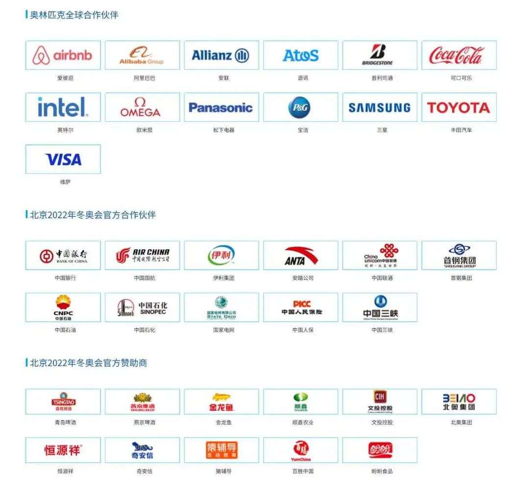 图/2022年北京冬奥会赞助商列表 来源/2022年北京冬奥会官方网站