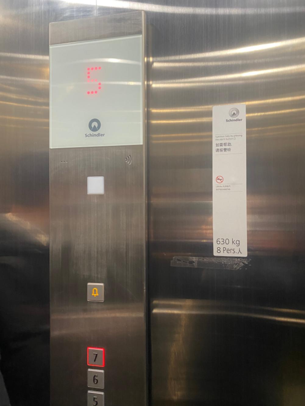 走近看一下电梯,电梯门开在侧面,是需要刷卡使用的。这种刷卡的方式也保证了安全性,只有业主才能进入。
