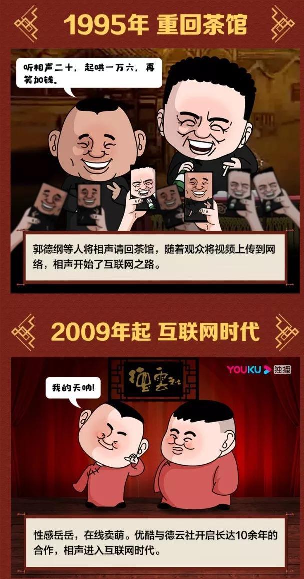 早在2009年, 德云社封箱演出便出现在了优酷上。2010年,读高三的冯喆还偷偷溜去网吧,看完了整场直播。