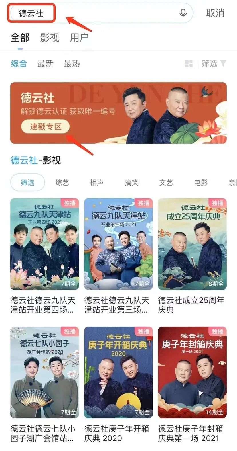 德云社在优酷视频的专区