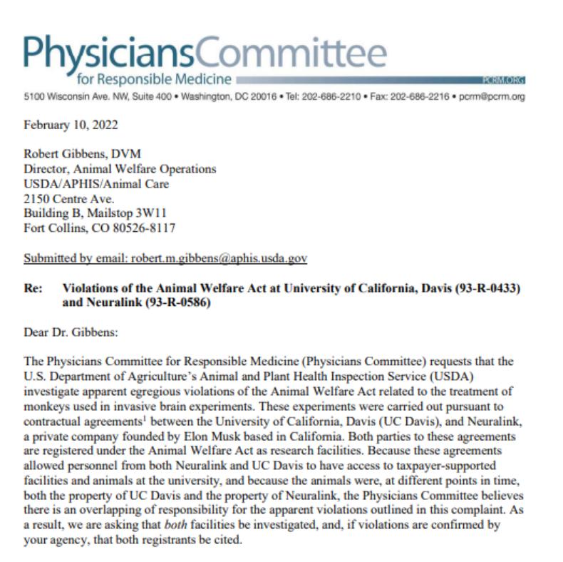 https://www.dropbox.com/s/kbwap1dj4e51mfe/2022-02-10%20PCRM%20USDA%20Complaint%20Re%20UC%20Davis%20and%20Neuralink%20%28with%20exhibits%29.pdf?dl=0