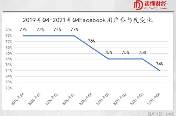虽然,相对于数十亿量级,用户环比下降100万是个不值一提的数字,但真正可怕的是用户下滑的趋势,以及用户参与度的下滑趋势。在Facebook的基本盘-北美地区,公司用户参与度有所下滑,同比减少2个百分点。(DAU/MAU)
