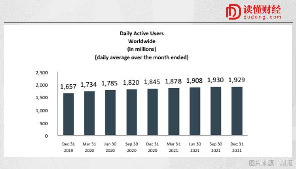 如果说,Tiktok对Facebook营收层面的冲击尚不明显,只是一个大趋势,那么Facebook用户增长受影响,已经是正在发生的事情了。四季度,FacebookMAU环比增长200万,DAU环比减少100万。(注:用户量仅含Facebook,不包括Messenger、Instgram 等产品用户)