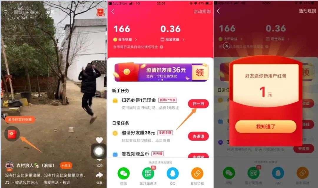 跟普通版相比,极速版内存小,产品形态类抖音,单列上滑,由算法驱动,区别于彼时主站双列社区打法。在运营逻辑上,又与趣头条非常相似,用金币鼓励用户登录、拉新、增加停留时长等,通过“网赚返利”模式猎取下沉市场用户。