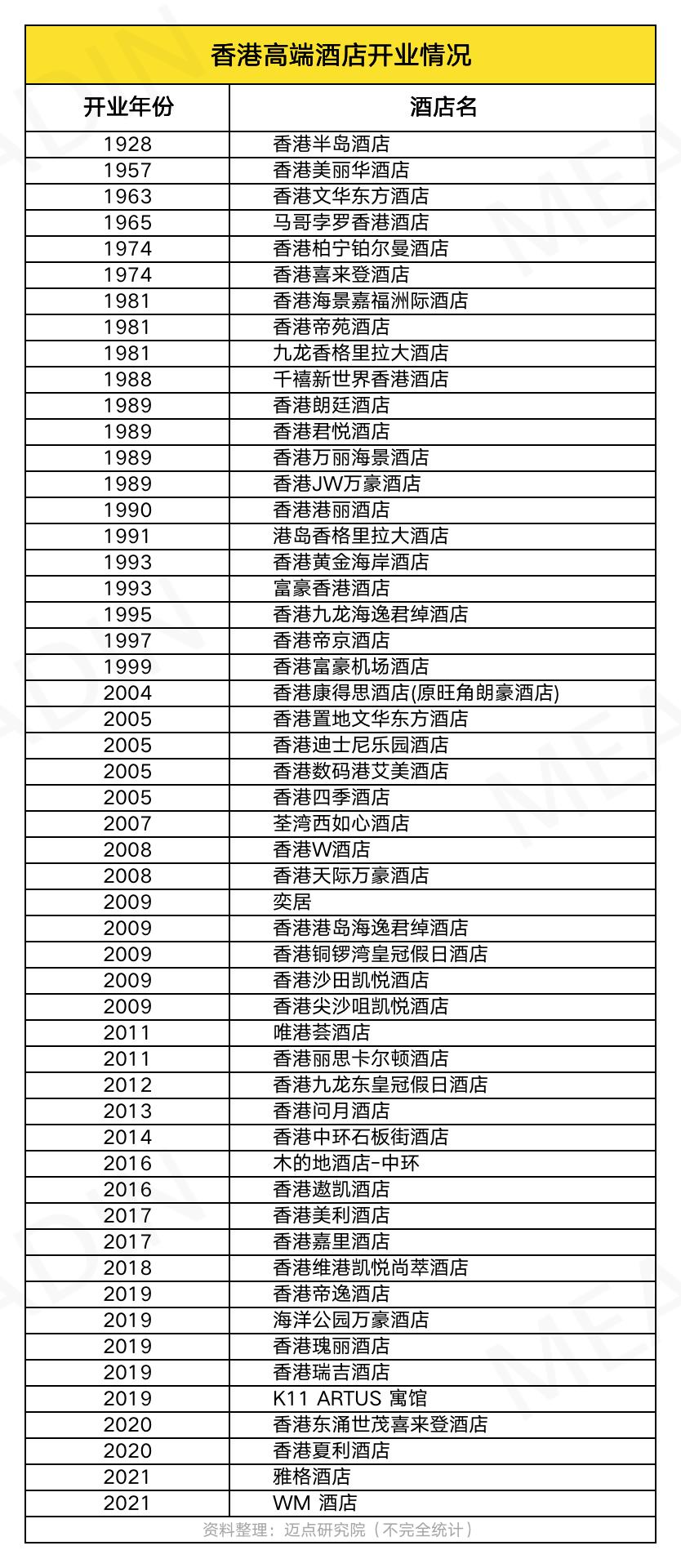 除去国际高端酒店品牌以外,香港的本土高端酒店品牌大多以单店出现,超过两家以上的连锁屈指可数,并且这些酒店大多正在进入物业老旧,翻新费用高昂的阶段,这种情况加剧了其在疫情下的经营困境。
