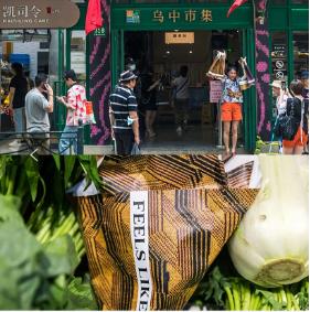 2021年9月,发布秋冬广告大片的Prada入驻上海乌中市集,切切实实让市场近距离地感受了一次Prada的生活气息。菜市场外观充满Prada当季主要视觉元素,菜品用印以Prada的环保纸袋包裹,菜市场被小红书用户称为“半个上海KOL的聚集地”。