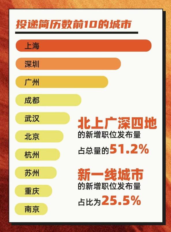 北上广深占节后新增职位发布量的51.2%,新一线占比上升