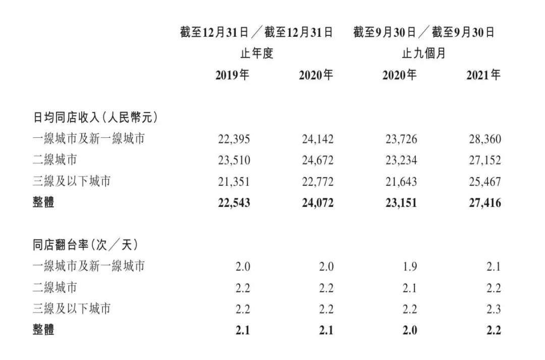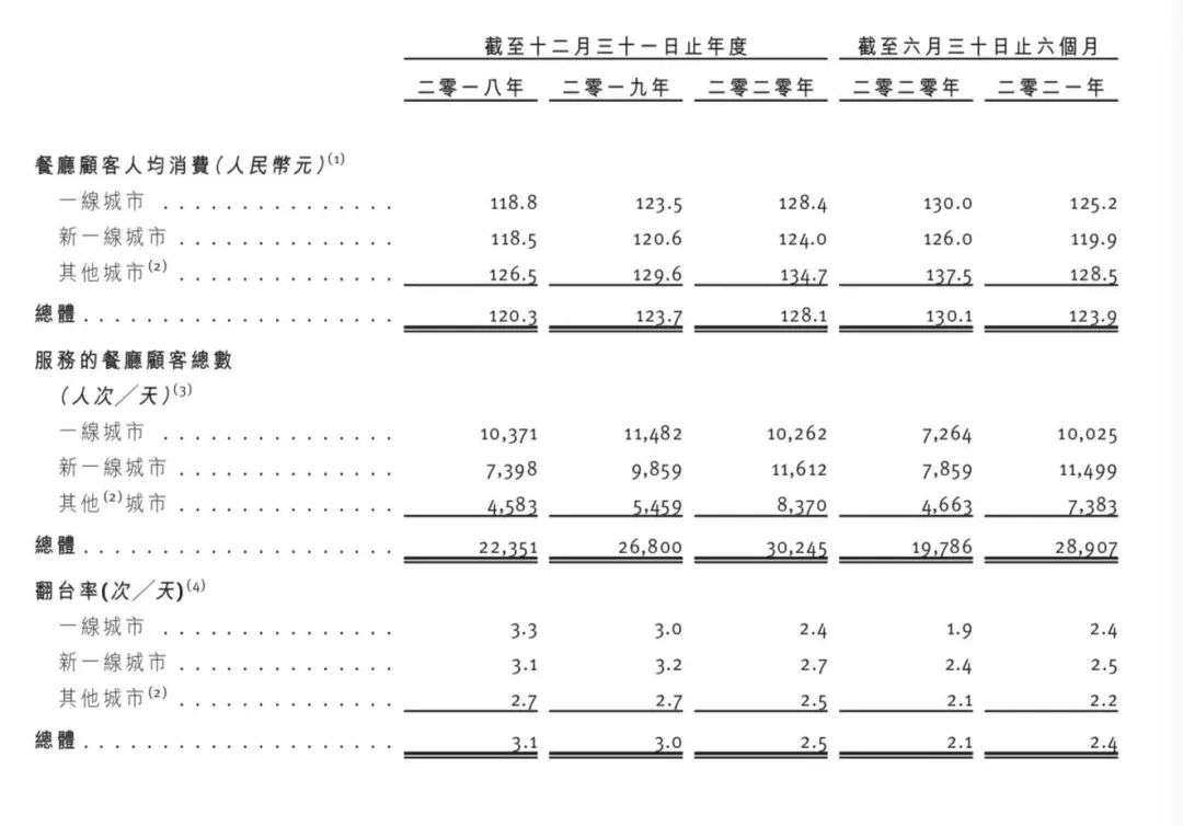 2019年至2021年9月,七欣天也采取了涨价策略,堂食客单价从117元涨到131元,但招股书显示,翻台率反而从2.1提升至2.2。