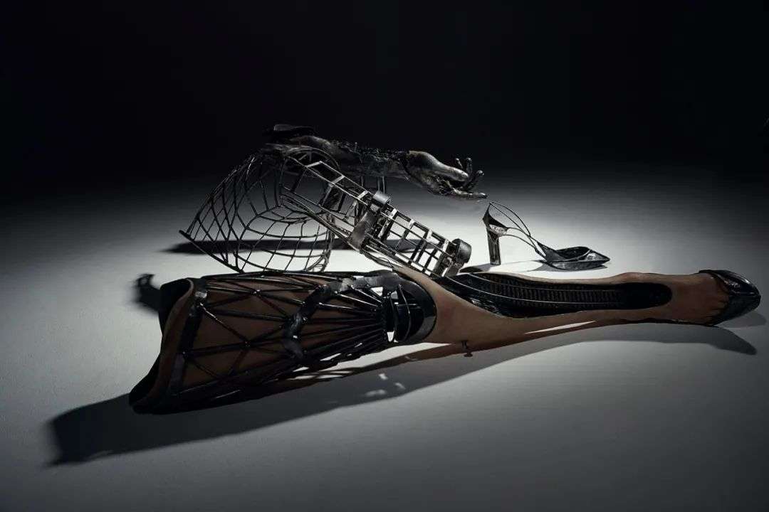 在她与 Channel 4合作的 Prototype MV中,也出现了两款 Sophie 的设计。其中令人过目难忘的“Spike Leg”灵感来自于 Viktoria 的梦境,由玻璃钢打造。尖锐的足尖在地面发出金属的声音,充满了危险而迷人的美感,义肢不仅成为她身体的一部分,似乎也变成她强大的武器。