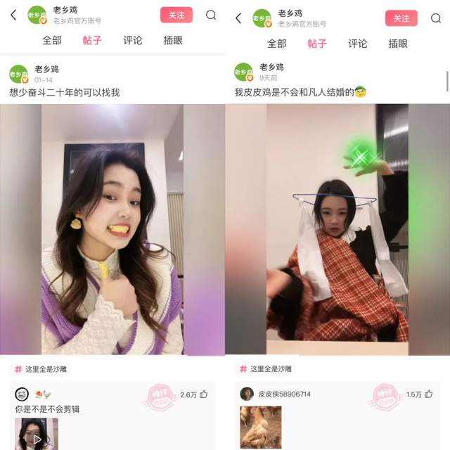 小红书上爱看帅哥的是“小红鸡”,皮皮虾上负责搞笑的是“皮皮鸡”,微博上整天咯咯哒的是“鸡爪子”,知乎上的是“学习鸡”,豆瓣上的是“战豆鸡”,B站上的是“BB鸡”,微信上的是“鸡宝宝”,抖音上还有一个长相酷似杨超越的“小鸡灵”,董事长束从轩则是“养鸡场场长”。