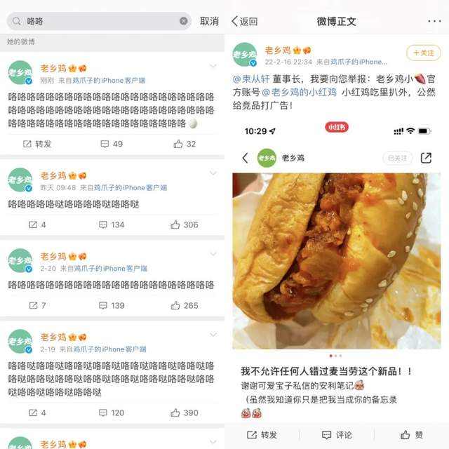 在其他企业账号还在中规中矩地发通知、打广告、全网统一分发的时候,老乡鸡已经从“咯咯哒”中找到流量密码,在互联网上建立起一个围绕着“鸡”的IP宇宙。
