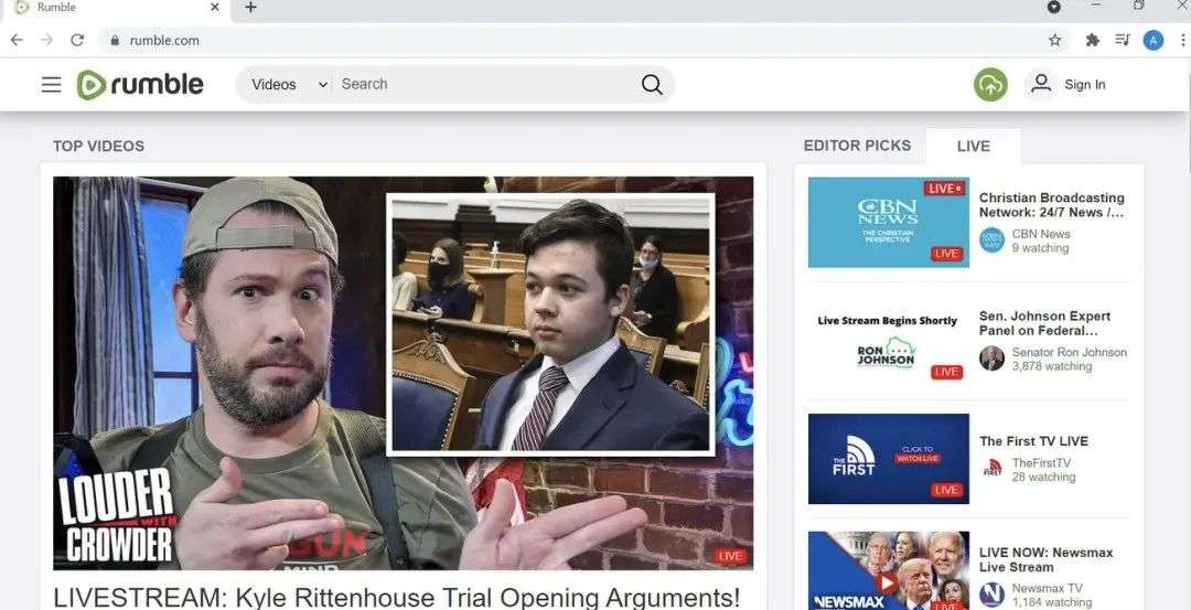 Rumble 对标 YouTube,成为右翼视频内容的聚集地|Rumble 截图