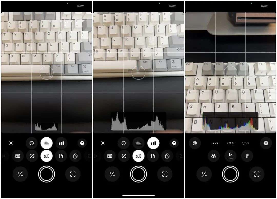Obscura 的直方图可以设置为两种尺寸,还可以在设置中为它切换亮度和色彩两种模式。