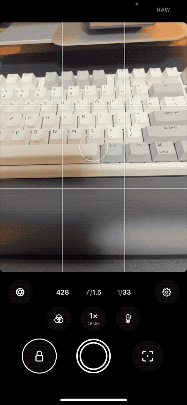 Obscura 还可以为取景画面启用三等分网格、十字线网格、水平仪等辅助线工具,帮助我更好地构图。