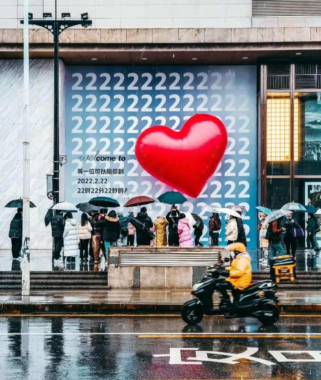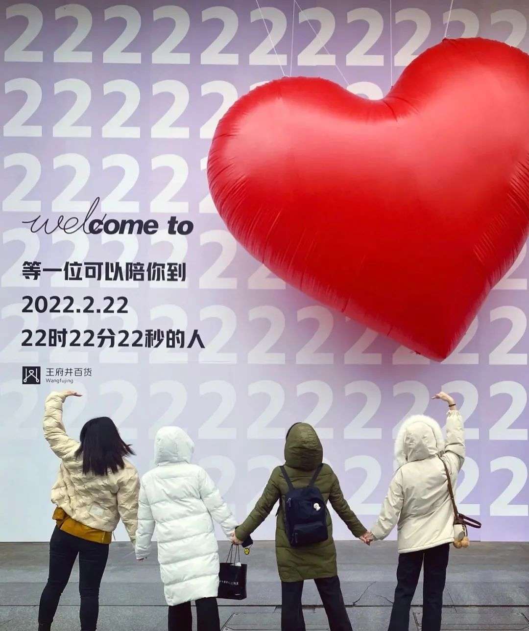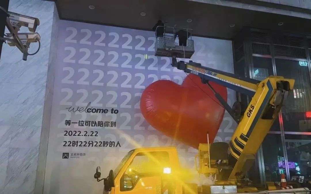 昨天是 2022 年 2 月 22 日,在这一天,在长沙核心商圈的五一广场某商场前立起了一块充满 2 的巨型背景和一个爱心气球。