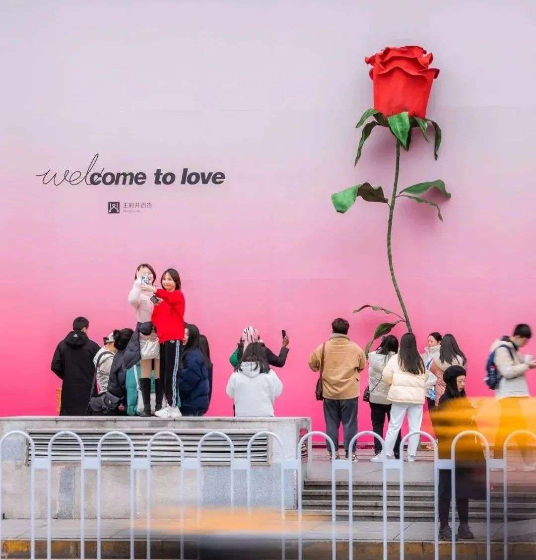 在 2 月 14 号那天,同一个位置上长出了一朵巨型玫瑰花,引来了无数路人的围观、拍照、打卡。