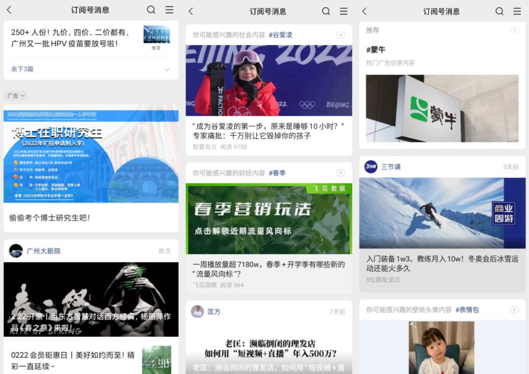 而再往前回溯,2020年增加的“广告”“你可能感兴趣的内容”“推荐”等模块,都可以当作微信和算法之间的和解,也是信息流模式最核心本质的展现。